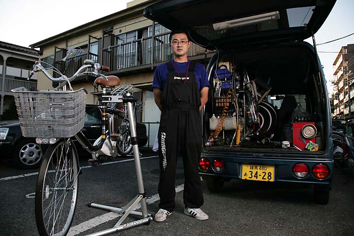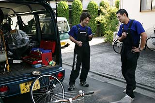 祖父の店を出てから、塗装屋、コンピューター会社に務めたこともあったが「自転車をきちんと修理できる人は少ない」「たとえ修理の腕を持つ人がいても、遠ければ頼めない」と感じ、出張修理の需要は確実にあると確信してサイクルピットを創業したのが1999年。年末に餅も買えずに家族で泣いた年もあったが、8年を経て、今はある程度順調に支持を得ていると感じる。修理の依頼の半数以上はリピーターだ。足立さんの確実な修理の様子やお客様への丁寧な対応を見ていると、販売を主にして強気になりがちな自転車販売店が多い中、繰り返し頼みたくなる客の心理はよく理解できた。