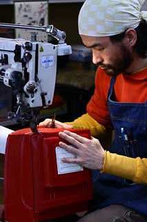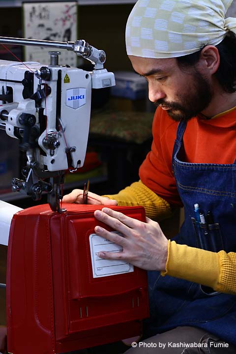 アパレルの会社に勤め、商品管理をしていた玉川勲(いさお)さん(35歳)が、土屋鞄製造所に入社したのは4年前である。洋服や身につけるものが好きでものづくりが好きで、「作る仕事」をしたいと転職してきた彼にとって、与えられたランドセルの仕事は、もしかすると一瞬「アテはずれ」に思えたかもしれない。 しかし作り始めるとのめり込んだ。糊を塗るという一見単純に思える仕事も、決められた幅にうまく塗るにはなかなか集中力がいる。ミシンがけも洋服作りとは違う技術が必要だ。曲がらないように、しかも早く。やり直しのきく洋服と違って、革は失敗してミシン穴があくと商品そのものをだめにしてしまう。「難しいところが思ったように仕上がったら面白い」。パーツパーツに面白みがあるんですよと玉川さんが話すのを聞いていると「ものを作ること」が好きな人とはこういう人なのだろうと思えてくる。 作っているうちに、ランドセルというのはとても機能的で完成されたデザインであることに気がつく。その完成された商品の「この幅を少し大きくしたらいいのではないか」「ミシン糸の色を変えてみたらどうだろう」とアイデアが次々浮かぶ。完成されたスタイルの中で、どれだけ斬新なことができるかを考えるのが面白い。毎年「限定モデル」を発売する土屋鞄製造所ではアイデアが採用されることも少なくない。 目標は、まずはランドセルの工程が全部できるようになること、それから鞄がひととおりできるようになること、そうしたら自分の好きなデザインで作りたい‥‥‥と話しながらも、イメージしても作ってみると変わってくるんです、まっすぐと思っていても実はカーブさせて切らなければまっすぐに見えなかったり、見えないところに芯が必要だったり、何回も何回も作っていかないと思うようにはできないものです、まだまだですとはにかんだ。 あと5年の急ピッチ