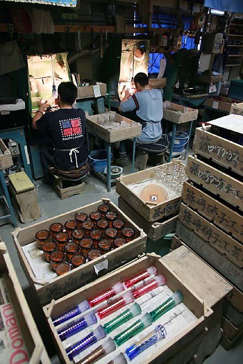 江戸切子は江戸時代に端を発するが、明治期にヨーロッパの技法が伝えられて以降、独自の瀟洒なデザインに昇華していく。昭和40年代、江東区周辺には硝子関係の町工場が170社を超えたが、量産製品が海外へ産地を移し始めてから業界は縮小、現在は約70社となり、独自の販路と技法を持つところが生き残っている。
