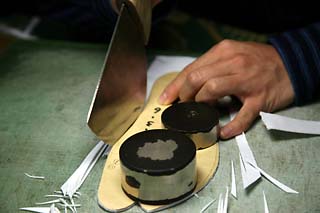 現在は担当している裁断以外に、より完成度の高い型紙づくりや、5台あるミシンを全て使いこなせるよう励んでいます。また、習っている能の仕舞の舞台が来月あり、鏡を前に毎日練習しています。(2008.11.18.石井健介さんよりメール)