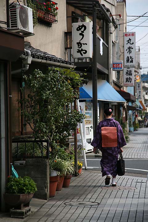 向島の町を歩くと、予想以上に着物姿の女性に出会う。小学校に上がるか上がらないかの女の子が、七五三でもないのに着物に白足袋をきちんと履いて歩く姿は他の町ではそうは見られない。昼間でもお稽古事に出かける着物姿の女性たちが、薄化粧にほのかな色香を漂わせて足早に歩く。今も約120人の芸者を抱える花柳界、向島の一角にめうがやはある。
