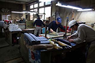 大阪の注染工場に移って3年目、そして3回目の繁忙期をむかえています。大阪であっても、関東、東北方面の仕事が多いのは意外でした。 半ば押し込みのような形で今の工場に転職したのですが、あらためて、何だったのかなーと思います。あの時の大阪で仕事がしたいと思った情熱というかなんというか。後悔はないです。 まだまだ道半ばという感じです。 ( 2012/6/24. 二関孝宏さんより)