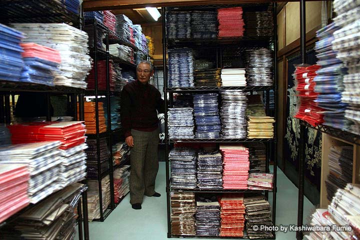 ※ 水をよく吸うもめんは日本の湿気の多い気候風土によく合う素材。浴衣をおむつに、そして雑巾になるまで使い切った時代は川辺に多くの染工所が立ち並んだ。浴衣市場の縮小とともに染工所は減ったが、近年はてぬぐい市場に活気がある。 ※ 浴衣や手ぬぐいを染める「注染」は日本独自の技法。やかんを使って染料を注ぐ。染色の多くは1つの型で1色を染めるが、注染では1つの型で複数の色を染められるのが特徴。色と色の間に糊を置き、染料が隣に入り込まないようにして一気に染める。これを「差し分け染め」という。また、裏からも染料を注ぐため、裏返しても同じ染まり具合で色に深みがあるのも特徴。