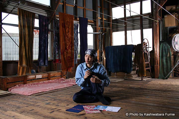 二関孝宏さん( 34 歳)はこの旭染工(株)で3年前から働き、今や大きな戦力となっている染め職人だ。「研究熱心だから覚えが早い」と阿部晴吉社長が評する。 「てぬぐいがたなびく風景がすごくのどかに見えて、いいなあと思ったんです」。職人の道を選んだ理由を聞くと、二関さんはそう言って笑った。地元仙台で就職し、営業マンとして時間に追われあくせく働いていたころ、目に映った地元の風景。笑いながら反物を干す職人の姿を見て「お天道様とにらめっこしながらする仕事に憧れた」のがこの世界に飛び込むきっかけだったという。不景気の真っ只中で、親しい友人たちと「これからは『手に職』だよな」と話していた矢先のことだった。 最初は仙台の染工所に転職するが、そのうち地元の染物業界の先細り感に不安を感じ、本場を見てみようと、東京の旭染工を見学に訪れ衝撃を受ける。大量の仕事をこなす熱気あふれる現場を前に「やりたい」という気持ちがふつふつと湧きあがった。同時に「自分にやりきれるだろうか。1年もつだろうか」と恐れも抱いたという。